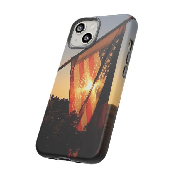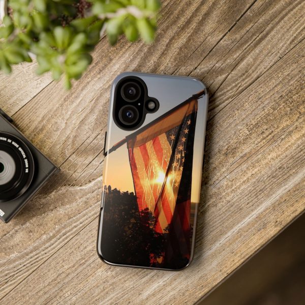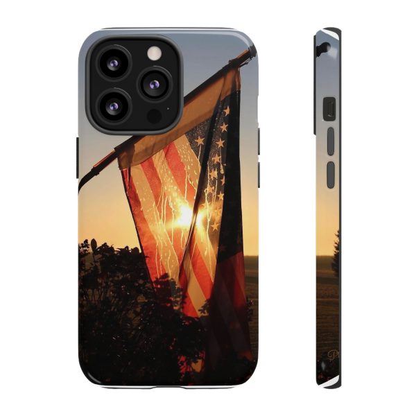 Introducing a stunning protective phone case that blends style with functionality, perfect for those who value both aesthetics and practicality. This durable case features a beautiful image of an American flag, capturing the warmth of a sunset. It offers a unique blend of personalization and protection, making it ideal for anyone who loves to showcase their patriotism. This phone case is not only a functional accessory but also a statement piece that fits seamlessly into daily life, whether you’re at work, at home, or out on an adventure. It’s an excellent gift for holidays like Independence Day, Memorial Day, or Veterans Day, and for anyone who appreciates art and durability in their essentials. Embrace a vibe that’s both bold and resilient with this phone case!