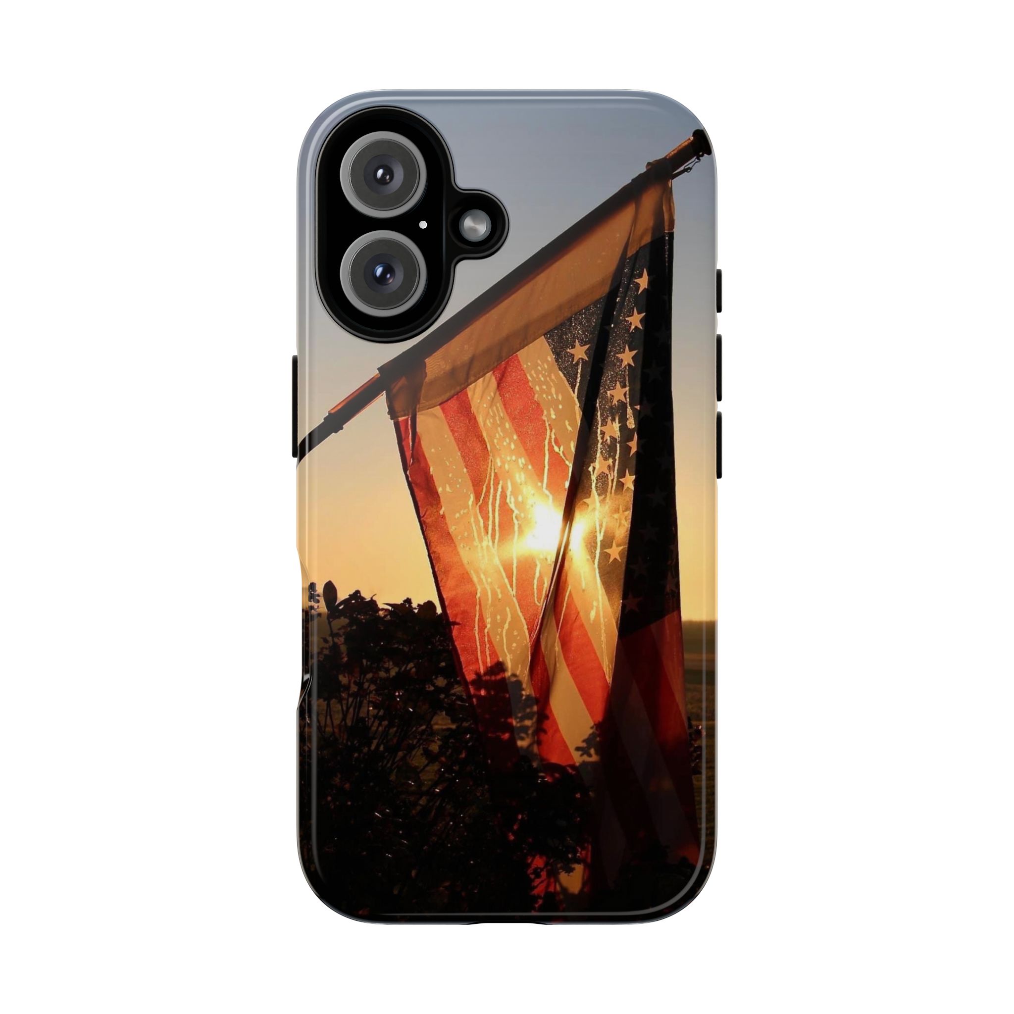 Introducing a stunning protective phone case that blends style with functionality, perfect for those who value both aesthetics and practicality. This durable case features a beautiful image of an American flag, capturing the warmth of a sunset. It offers a unique blend of personalization and protection, making it ideal for anyone who loves to showcase their patriotism. This phone case is not only a functional accessory but also a statement piece that fits seamlessly into daily life, whether you’re at work, at home, or out on an adventure. It’s an excellent gift for holidays like Independence Day, Memorial Day, or Veterans Day, and for anyone who appreciates art and durability in their essentials. Embrace a vibe that’s both bold and resilient with this phone case!